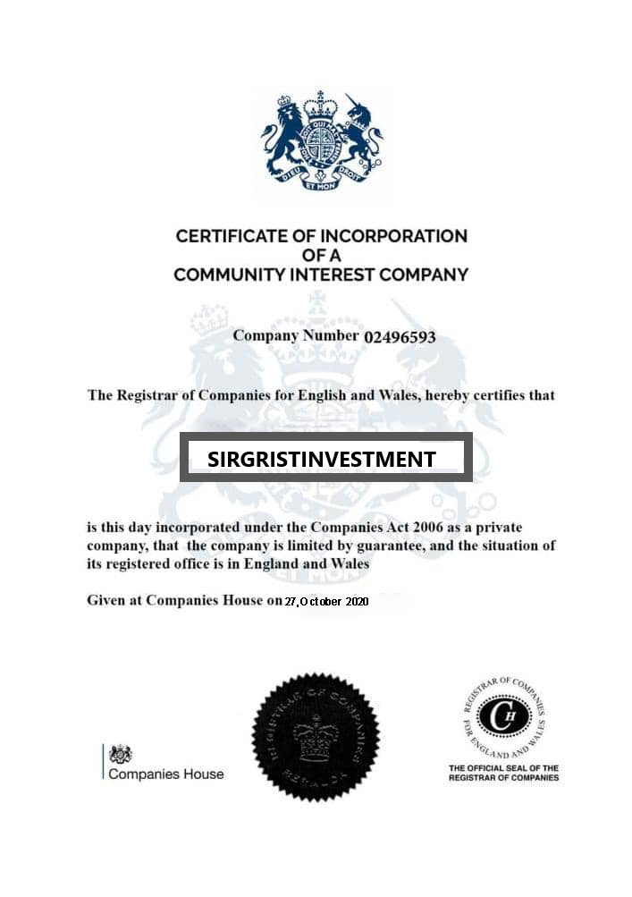 sirgritinvestment.org is a fully registered and licensed company in United Kingdom. sirgritinvestment.org is powered by the latest and most secure form of SSL data encryption to keep all your data and information safe and secure.